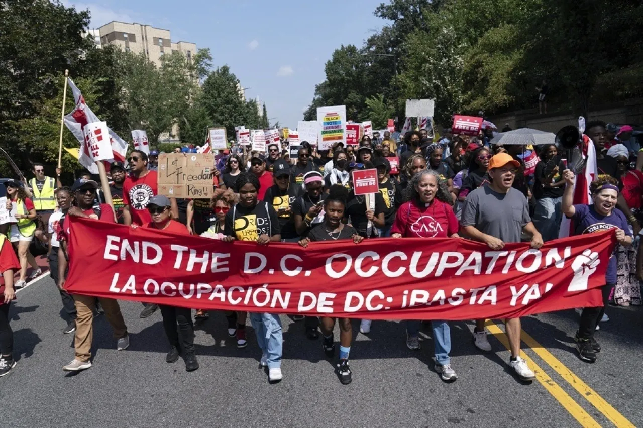 خبرني – تظاهر آلاف المحتجين في واشنطن العاصمة، يوم السبت، للمطالبة بأن ينهي الرئيس الأمريكي دونالد ترامب نشر قوات الحرس الوطني التي تقوم بدوريات في شوارع العاصمة.
