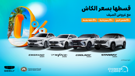 عروض الصيف من جيلي الوعلان – تمويل بدون دفعة أولى أو أرباح أو رسوم إدارية – وعروض أخرى مستمرة حتى 30 يونيو 2025.