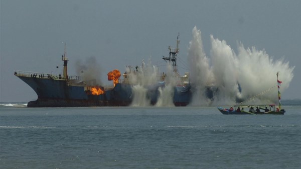 انفجار ضخم على متن سفينة في لوس أنجلوس