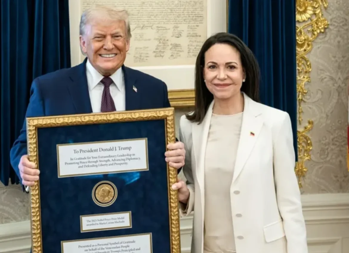 وقالت ماتشادو للصحافيين خارج مبنى الكابيتول عقب اجتماعها مع ترامب في البيت الأبيض، “لقد قدمت لرئيس الولايات المتحدة ميدالية جائزة نوبل للسلام”.