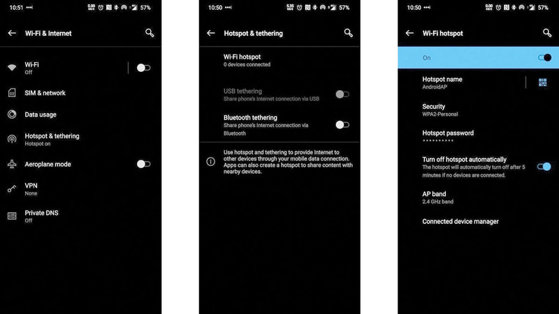 ويتم تشغيل هذه الوظيفة في هواتف «أندرويد» عن طريق فتح قائمة «الإعدادات»، والانتقال إلى «الشبكة والإنترنت/نقط الاتصال والربط»، ثم النقر على «نقطة اتصال الواي فاي»، وبعدها بالنقر على «اسم نقطة الاتصال» وتحديد اسم لنقطة اتصال الواي فاي، ثم النقر على «كلمة مرور نقطة الاتصال» وتحديد كلمة مرور لها، وبعد ذلك يمكن تفعيل أو تعطيل نقطة الاتصال بوساطة الزر الانزلاقي الموجود في الأعلى.